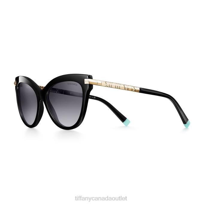 Atlas Cat Eye Sunglasses In Black Acetate With Pale Gold-colored Metal Accents
