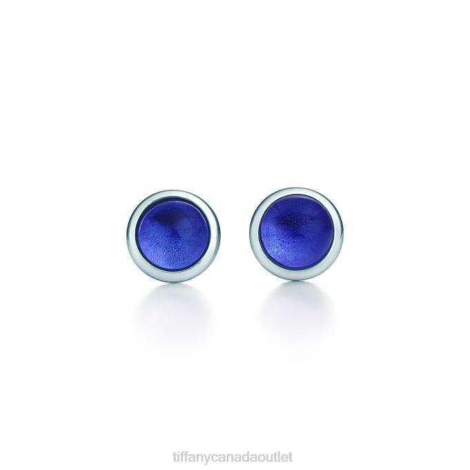 Earrings In Sterling Silver With Two Round Cabochon Tanzanites. Original Designs Copyrighted By Elsa Peretti.