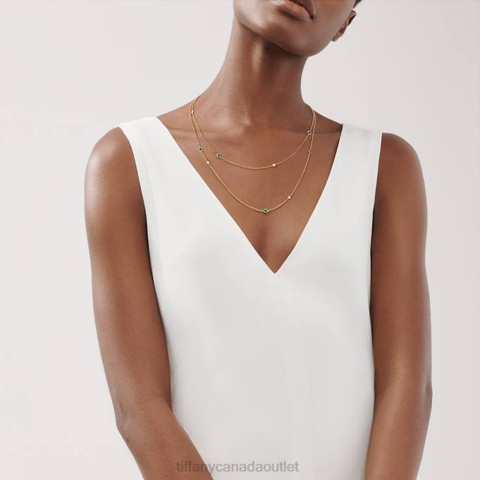 Tiffany Color by the Yard Sprinkle Necklace Unisex 0J0F258 Jewelry in Gold with Emeralds and Diamonds