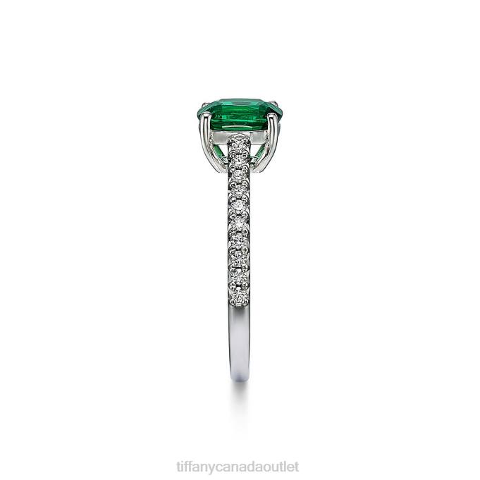 Crafted With Clean, Contemporary Lines, This Timeless Tiffany Novo Ring Is Expertly Designed With A Cushion-cut Center Emerald Set Among Four Slim Prongs. Distinctly Modern With A Romantic Sensibility, This Ring Features A Slender Band Of Micro-pave-set Diamonds For Added Sparkle.
