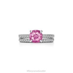 Tiffany Cushion-cut Pink Sapphire Ring Unisex 0J0F1592 Jewelry in Platinum with Pave Diamonds