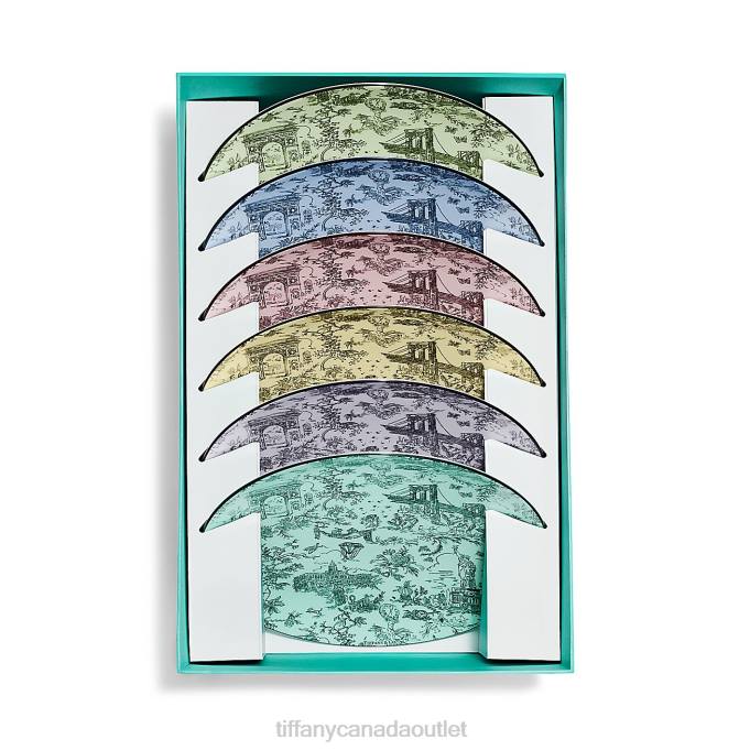 Tiffany Toile Designs Are A Whimsical Tribute To Tiffany’s Hometown And Its Heritage. Playful Yet Elegant, The Artwork Is Inspired By An Illustration Of New York City From The Tiffany Archives. The Brooklyn Bridge Meets Bird On A Rock; The Statue Of Liberty Mingles With A Tiffany & Co. Diamond. This Colorful Set Features A Palette Inspired By Our World-renowned Gemstones And A Black Hand-painted Rim. Pair This Set With Tiffany Toile Mugs To Complete Your Collection.