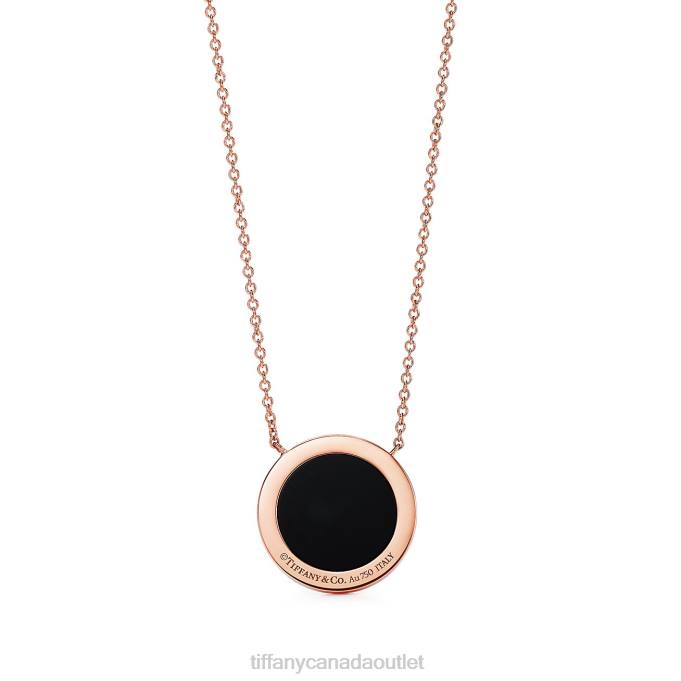 Tiffany Diamond and Black Onyx Circle Pendant Unisex 0J0F248 Jewelry in 18k Rose Gold, 16-18″