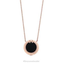 Tiffany Diamond and Black Onyx Circle Pendant Unisex 0J0F248 Jewelry in 18k Rose Gold, 16-18″