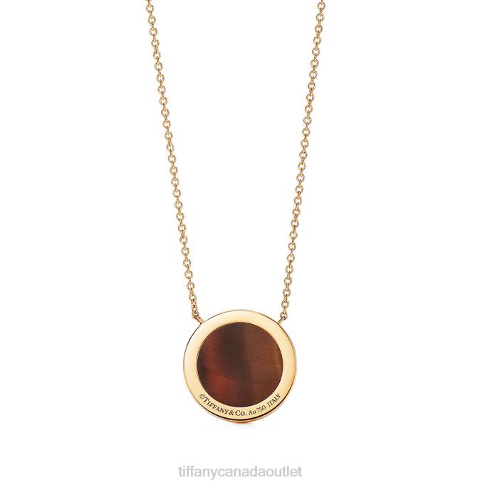 Tiffany T Diamond And Tiger’s Eye Circle Pendant In 18k Gold.