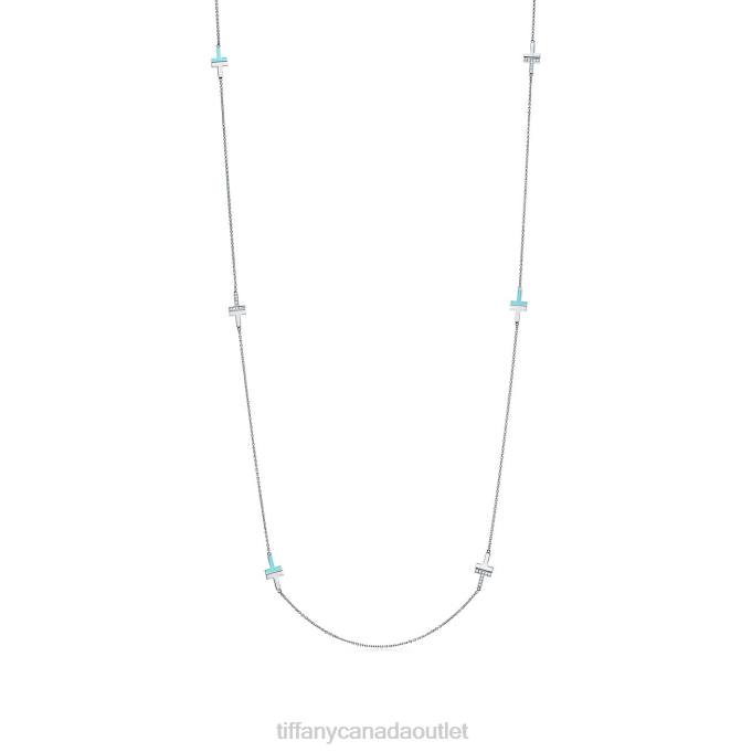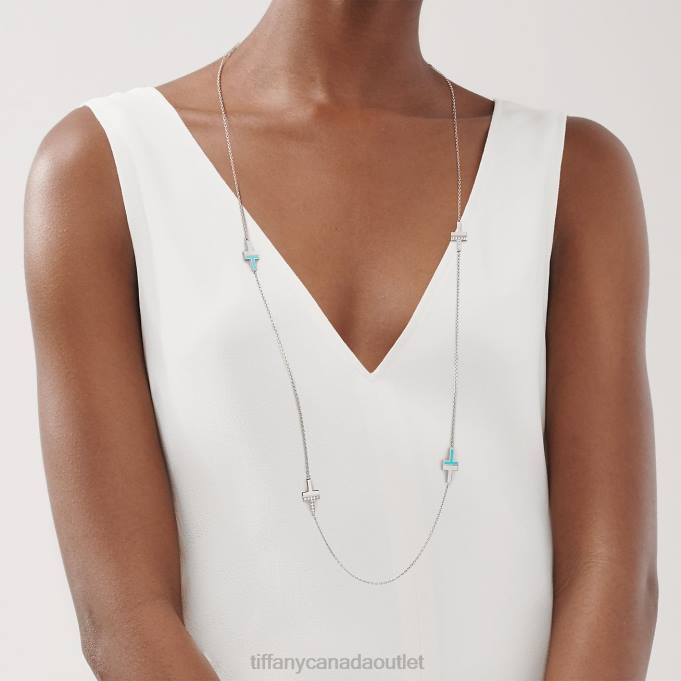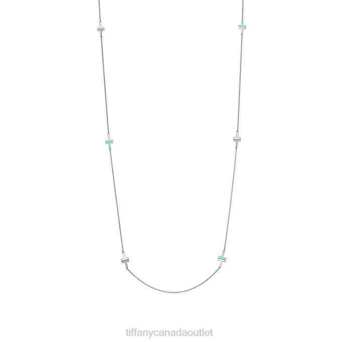 Tiffany T Diamond And Turquoise Station Necklace In 18k White Gold.