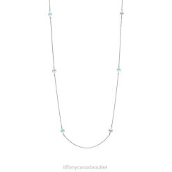 Tiffany T Diamond And Turquoise Station Necklace In 18k White Gold.