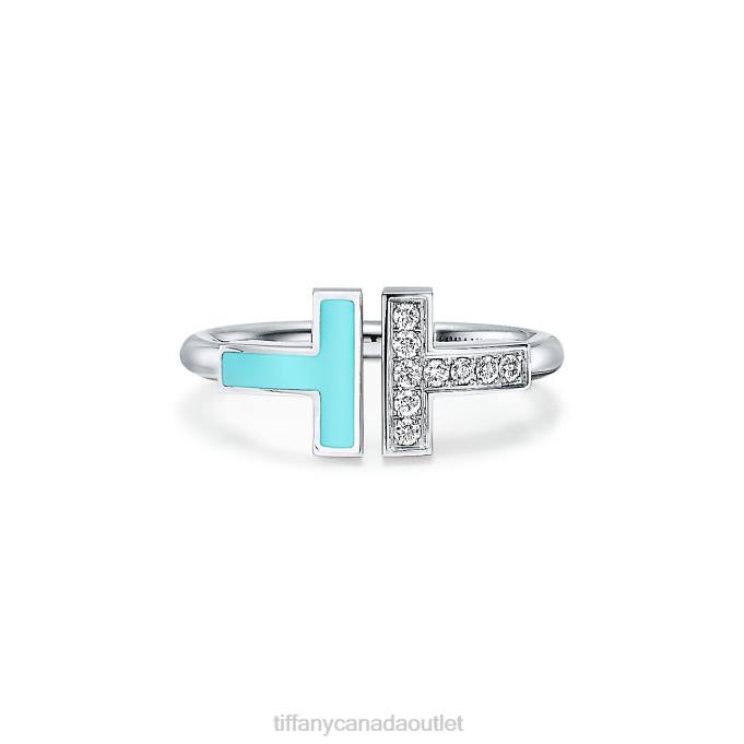Tiffany T Diamond And Turquoise Wire Ring In 18k White Gold.