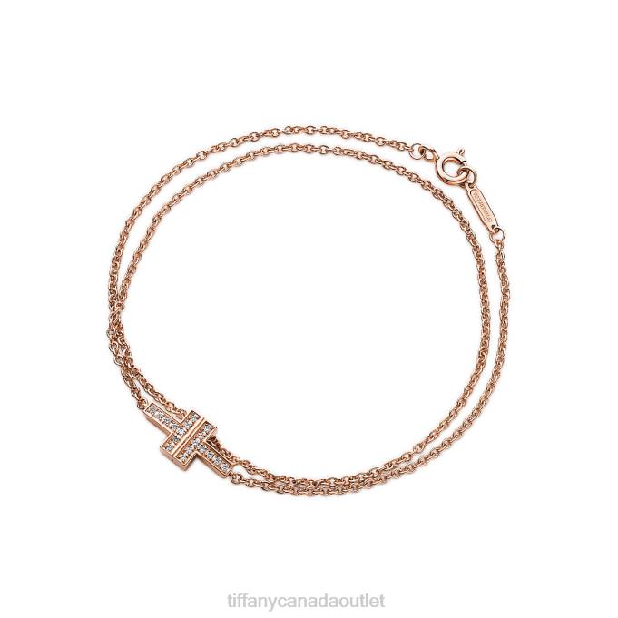 Tiffany T Diamond Double Chain Bracelet In 18k Rose Gold, Medium.