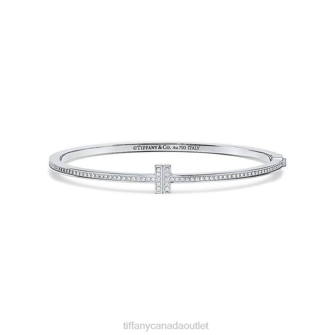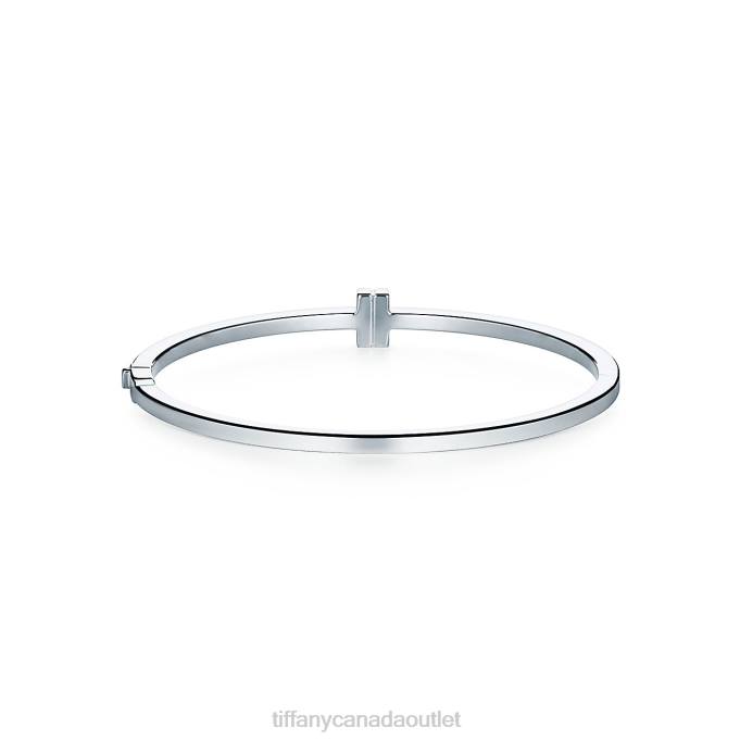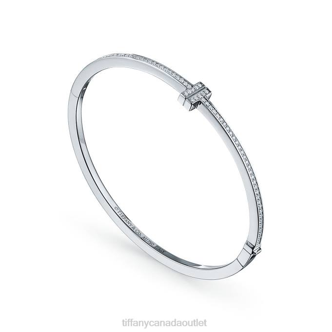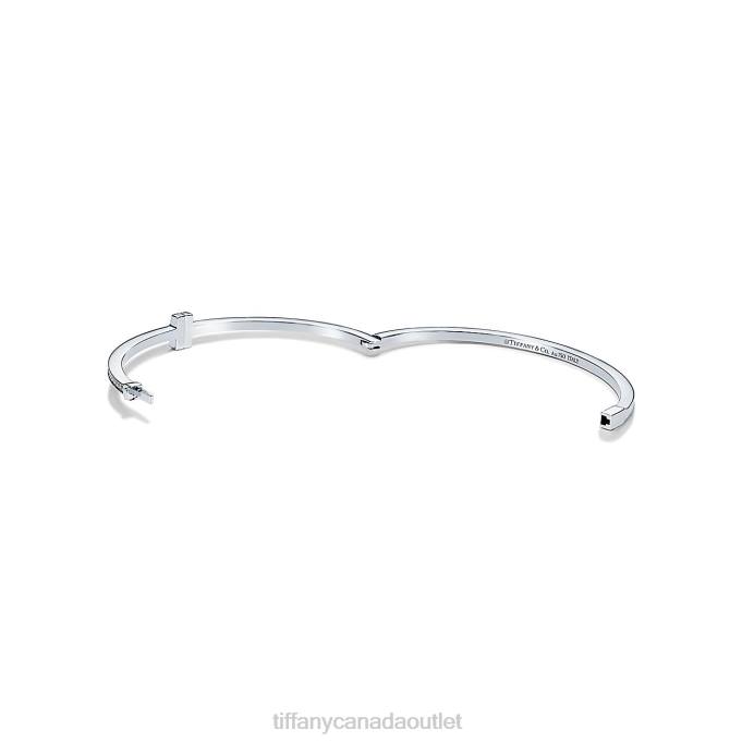 Tiffany T Diamond Hinged Wire Bangle In 18k White Gold, Medium.