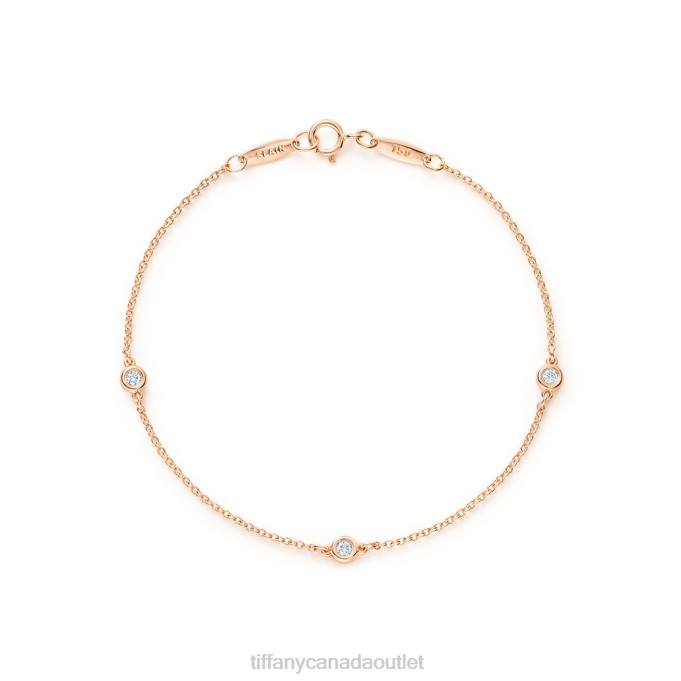 Tiffany Round Diamonds Catch The Light And Make It Dance. Bracelet In 18k Rose Gold With Three Round Brilliant Diamonds. 7” Long. Carat Total Weight .09. Original Designs Copyrighted By Elsa Peretti.