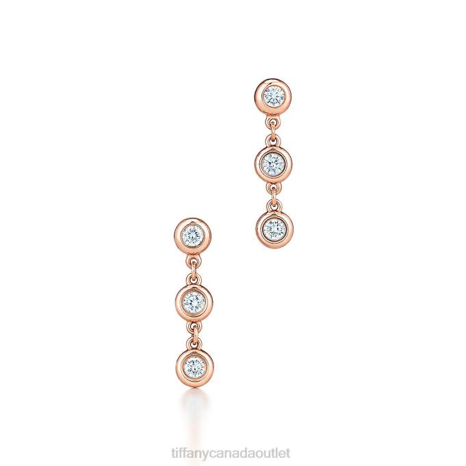 Tiffany Round Diamonds Catch The Light And Make It Dance. Drop Earrings In 18k Rose Gold With Six Round Brilliant Diamonds. Carat Total Weight .28. Original Designs Copyrighted By Elsa Peretti.
