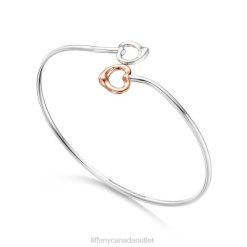 Elsa Peretti Double Open Heart Bangle In Silver And 18k Rose Gold, Medium.