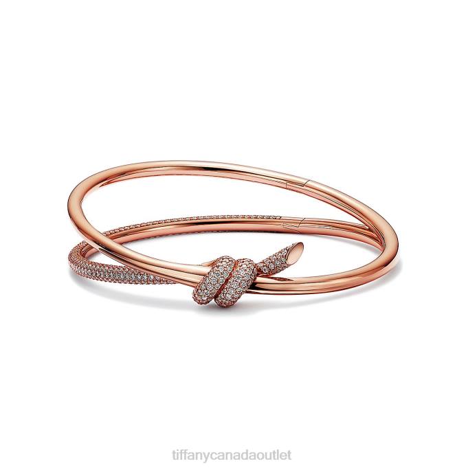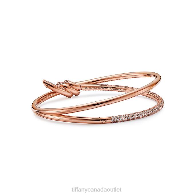 Tiffany Knot Double Row Hinged Bangle In Rose Gold With Diamonds