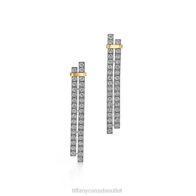 Tiffany Drop Earrings Unisex 0J0F823 Jewelry in Platinum and Yellow Gold with Diamonds