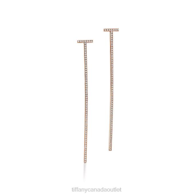 Tiffany T Elongated Wire Bar Earrings In 18k Rose Gold With Diamonds.
