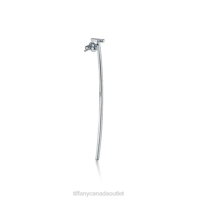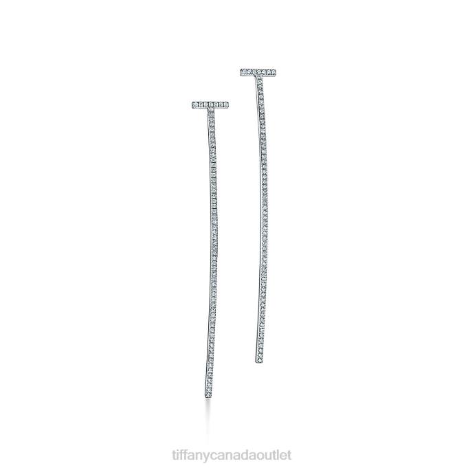 Tiffany T Elongated Wire Bar Earrings In 18k White Gold With Diamonds.