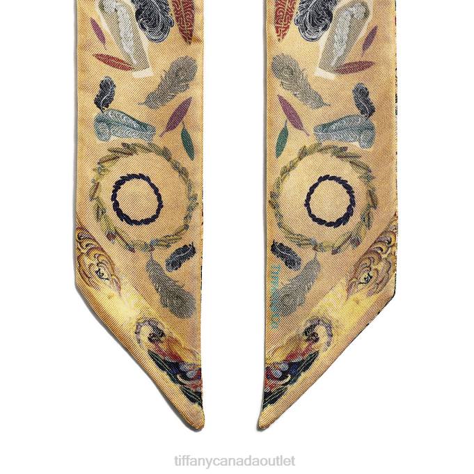 Tiffany Audubon Feather Ribbon Scarf In Camel Brown Silk