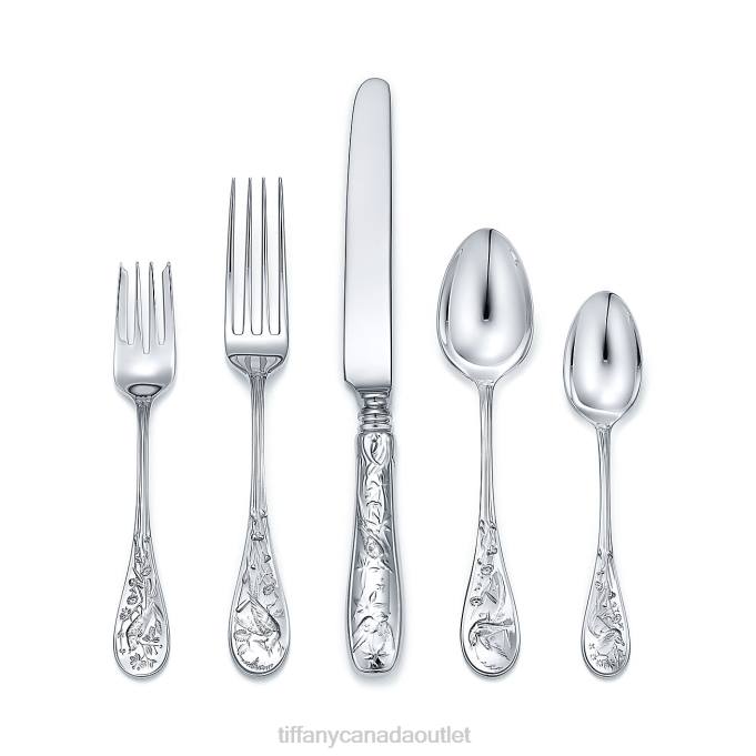 Inspired By 19th-century Japanese Bird Paintings. Five-piece Flatware Set In Sterling Silver Includes One Dinner Fork, One Salad Fork, One Dinner Knife, One Dessert Spoon And One Teaspoon.Note, Engraved Items Will Be Delivered After Father’s Day.