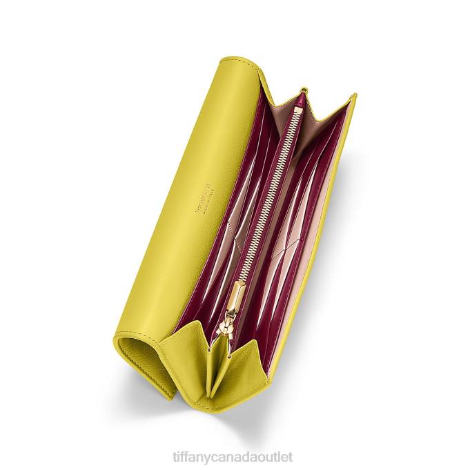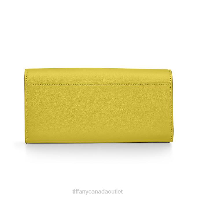 T&CO. Flap Continental Wallet In Chartreuse Leather