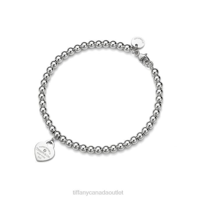 Return To Tiffany Heart Tag Bead Bracelet In Silver With A Diamond, 4 Mm