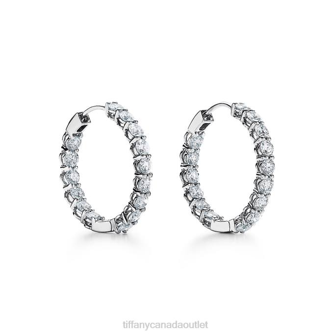 Hoop Earrings In Platinum With Diamonds, Medium.