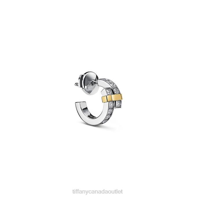 Tiffany Edge Hoop Earrings In Platinum And Yellow Gold With Diamonds