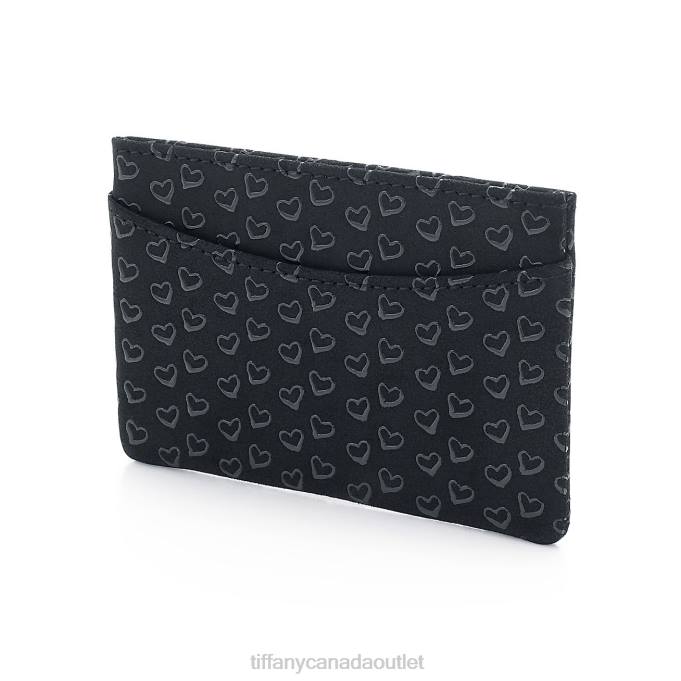 Elsa Peretti Card Case In Black Leather With Lacquered Open Hearts.