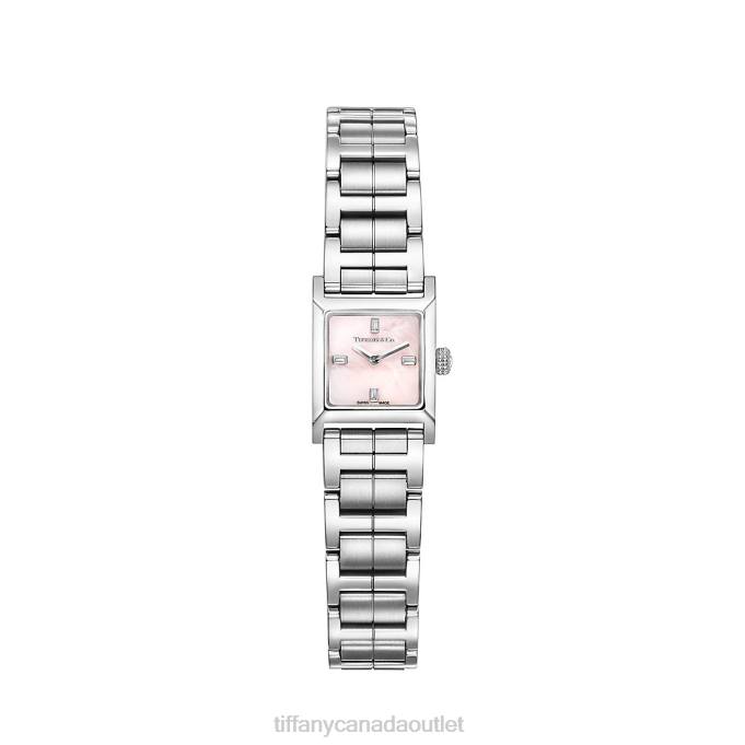 Tiffany 1837 Makers 16 Mm Square Watch In Stainless Steel With A Pink Dial