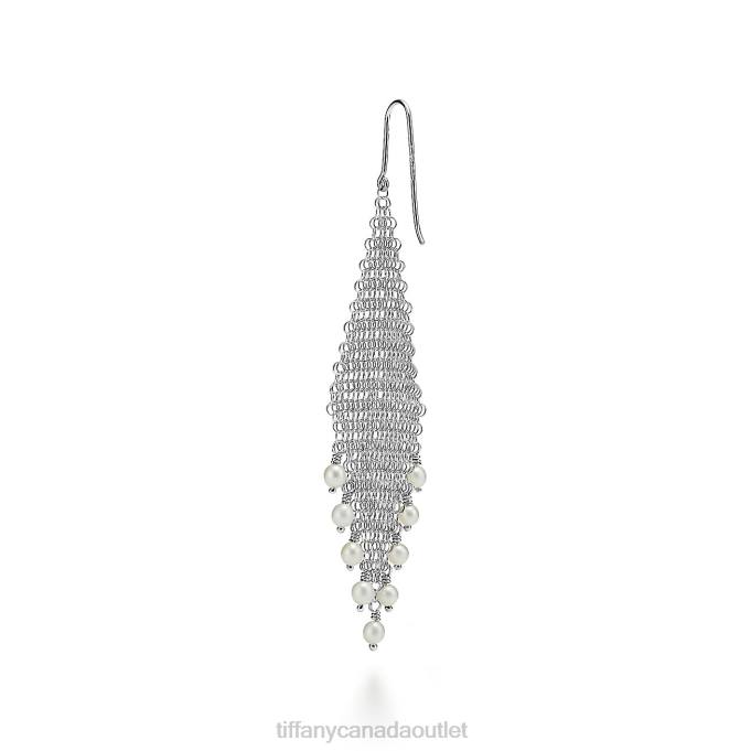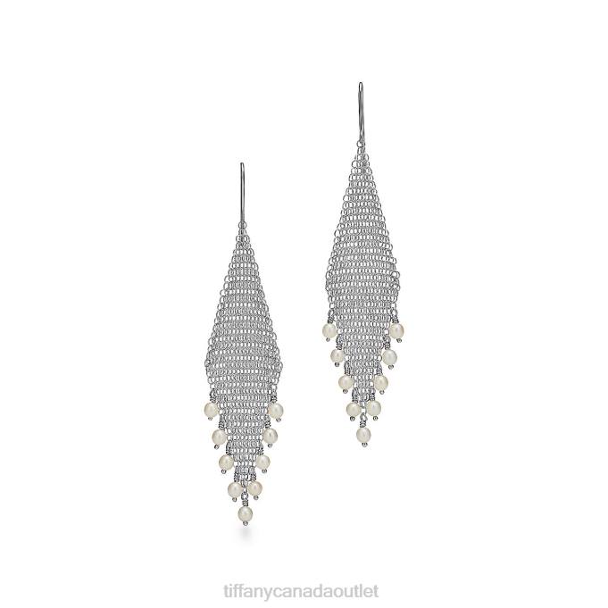 Elsa Peretti Mesh Fringe Earrings In Sterling Silver With Freshwater Pearls.