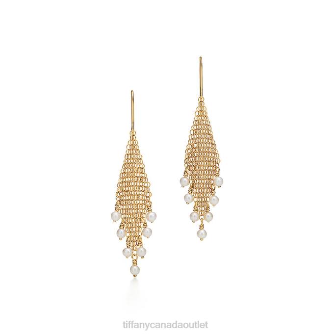 Elsa Peretti Mesh Fringe Earrings In 18k Gold With Freshwater Pearls.