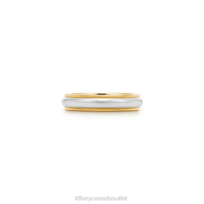 Tiffany Milgrain Band Ring Unisex 0J0F1803 Jewelry in Platinum and Yellow Gold, 4 mm Wide