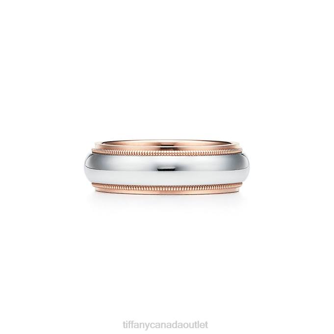 Tiffany Together Milgrain Band Ring In Platinum And Rose Gold, 6 Mm Wide