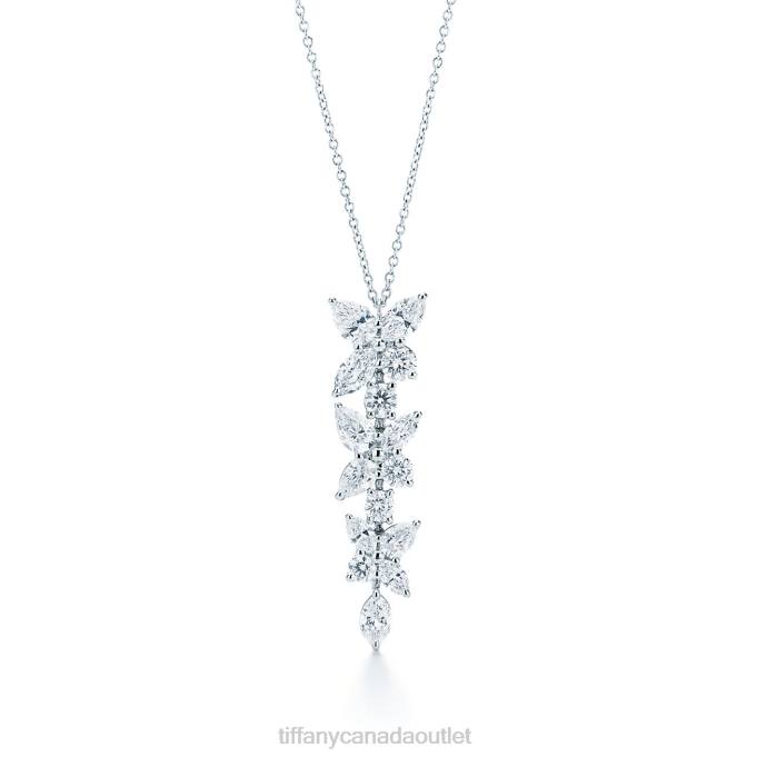 Tiffany Victoria Mixed Cluster Drop Pendant In Platinum With Diamonds.