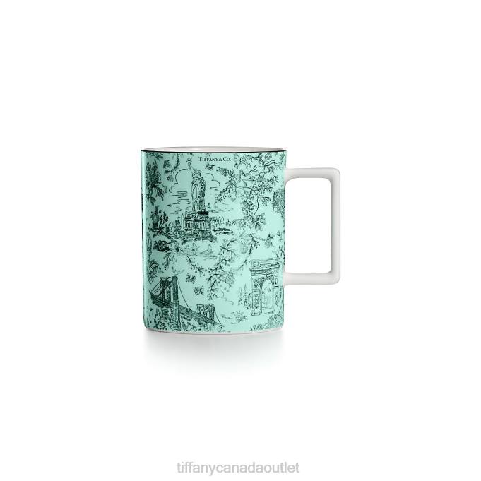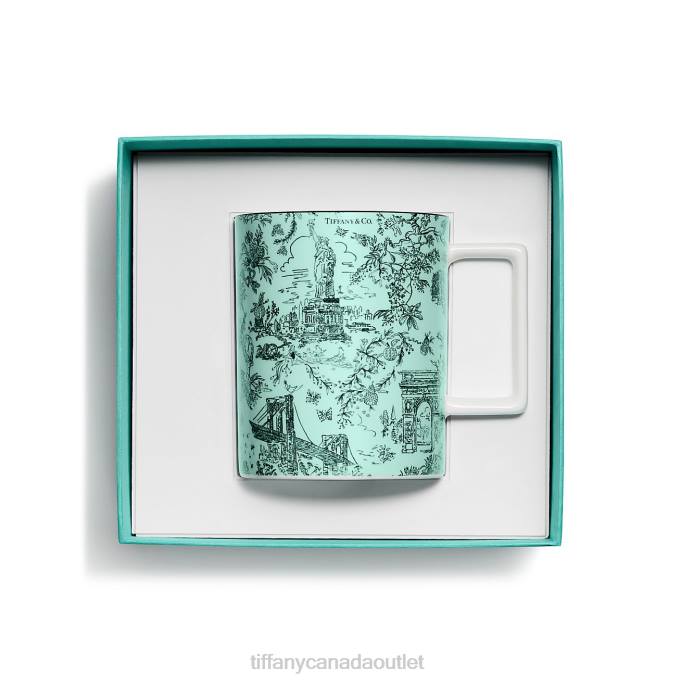 Tiffany Toile Designs Are A Whimsical Tribute To Tiffany’s Hometown And Its Heritage. Playful Yet Elegant, The Artwork Is Inspired By An Illustration Of New York City From The Tiffany Archives. The Brooklyn Bridge Meets Bird On A Rock; The Statue Of Liberty Mingles With A Tiffany & Co. Diamond. This Tiffany Blue-colored Mug Features The Elaborate Print With A Black Hand-painted Rim. Pair The Mug With A Tiffany Toile Plate To Create A Set Of Your Own.