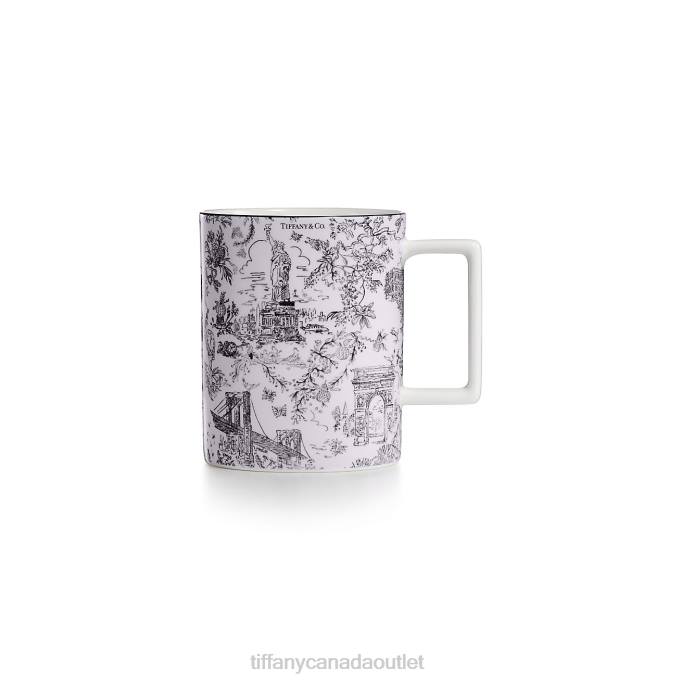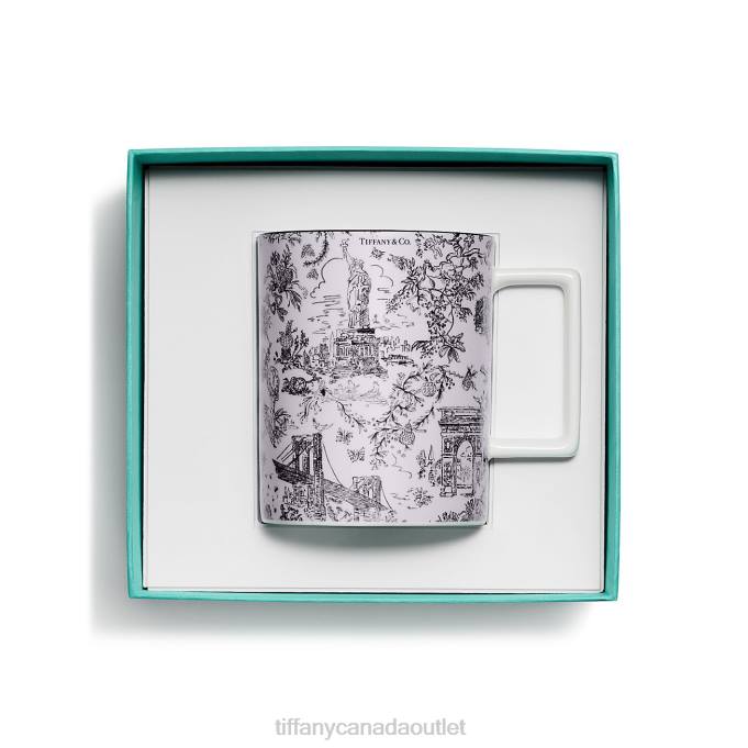 Tiffany Toile Designs Are A Whimsical Tribute To Tiffany’s Hometown And Its Heritage. Playful Yet Elegant, The Artwork Is Inspired By An Illustration Of New York City From The Tiffany Archives. The Brooklyn Bridge Meets Bird On A Rock; The Statue Of Liberty Mingles With A Tiffany & Co. Diamond. This Kunzite-colored Mug Features The Elaborate Print With A Black Hand-painted Rim. Pair The Mug With A Tiffany Toile Plate To Create A Set Of Your Own.