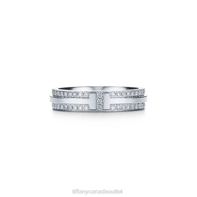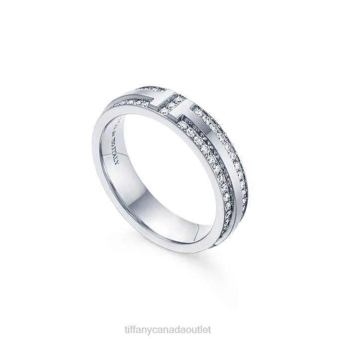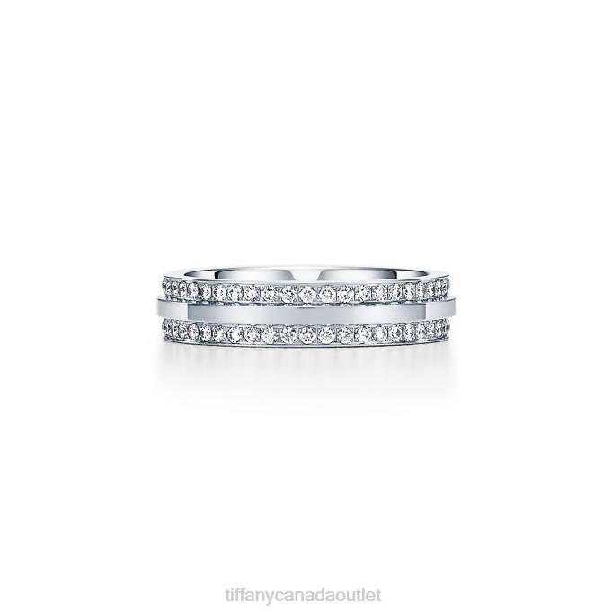 Tiffany Narrow Pave Diamond Ring Unisex 0J0F1557 Jewelry in 18k White Gold
