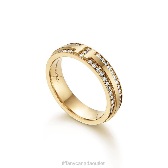 Tiffany T Narrow Pave Diamond Ring In 18k Gold, 4.5 Mm Wide.