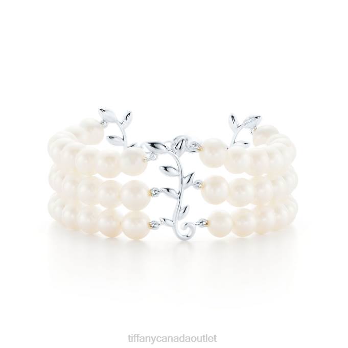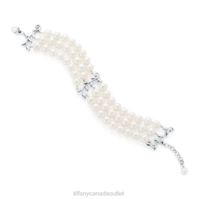 Paloma Picasso Olive Leaf Three-row Pearl Bracelet In Sterling Silver.