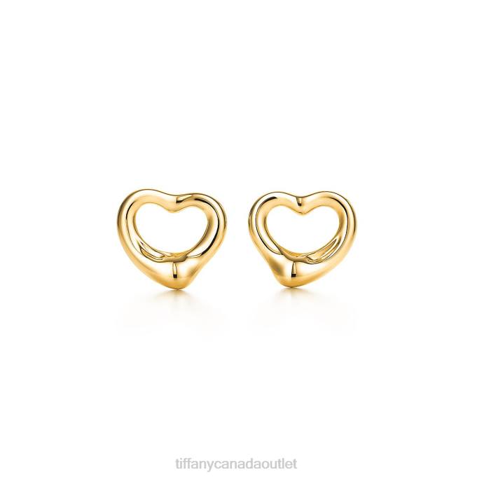 Tiffany Open Heart Stud Earrings Unisex 0J0F736 Jewelry in Yellow Gold, 11 mm