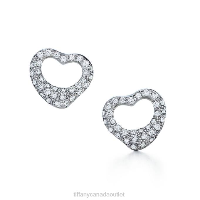 Elsa Peretti Open Heart Stud Earrings In Platinum With Pave Diamonds, 11 Mm
