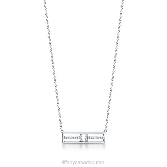 Tiffany T Open Horizontal Diamond Bar Pendant In 18k White Gold.