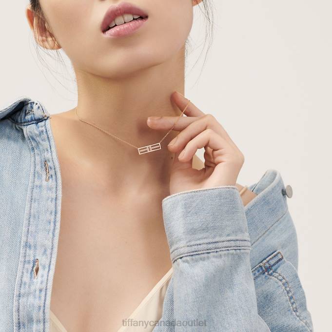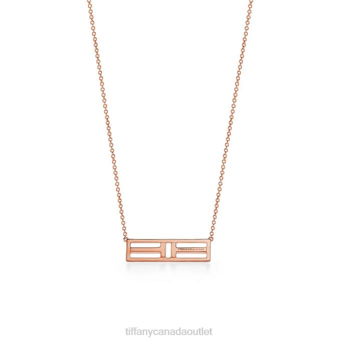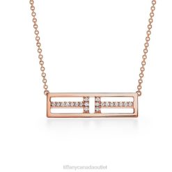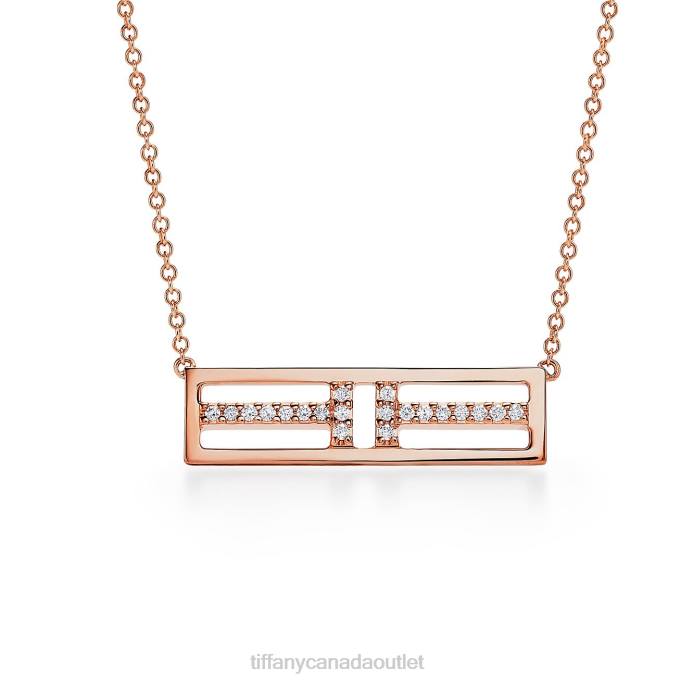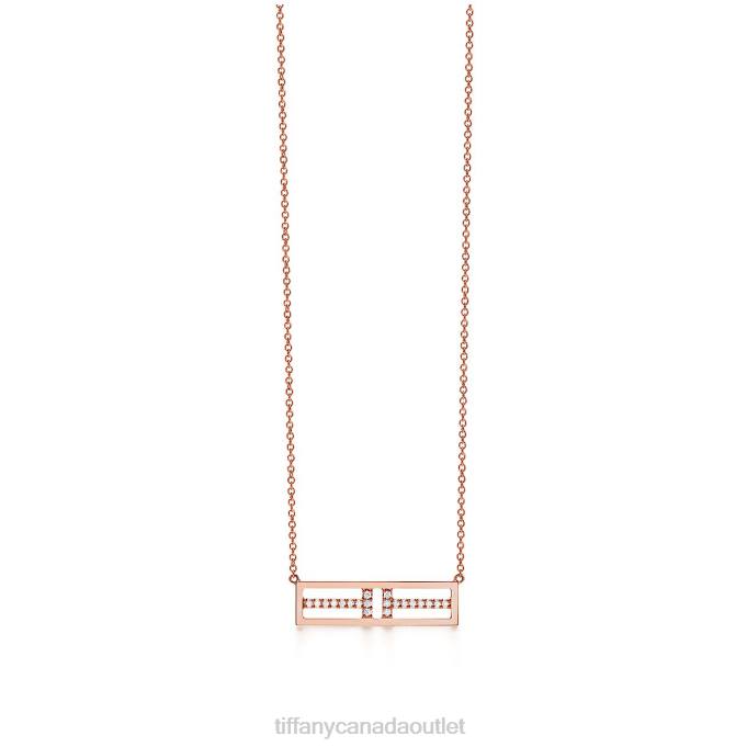 Tiffany T Open Horizontal Diamond Bar Pendant In 18k Rose Gold.