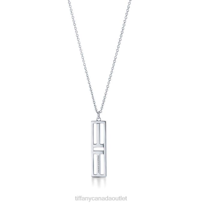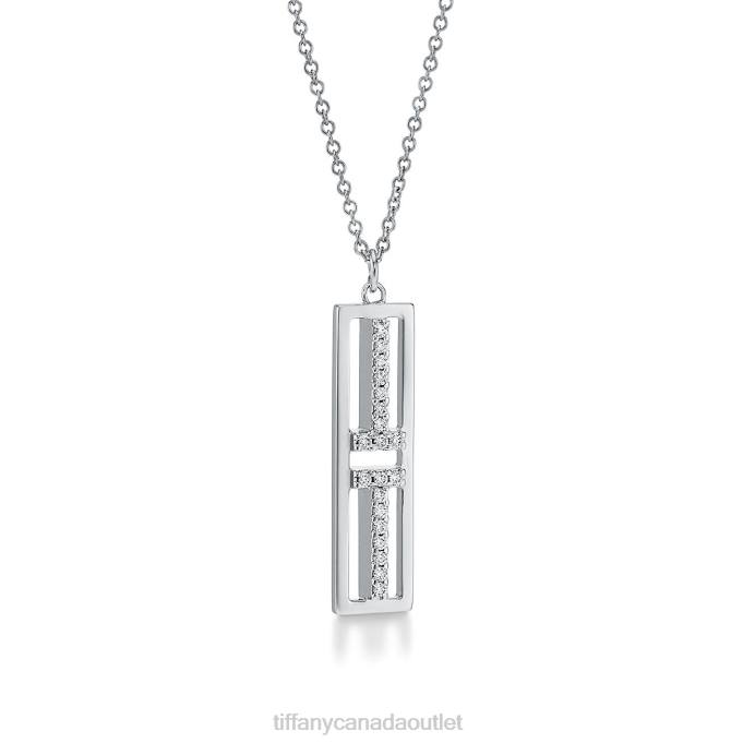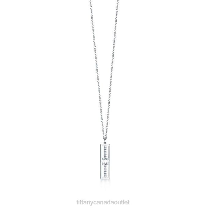 Tiffany T Open Vertical Diamond Bar Pendant In 18k White Gold.