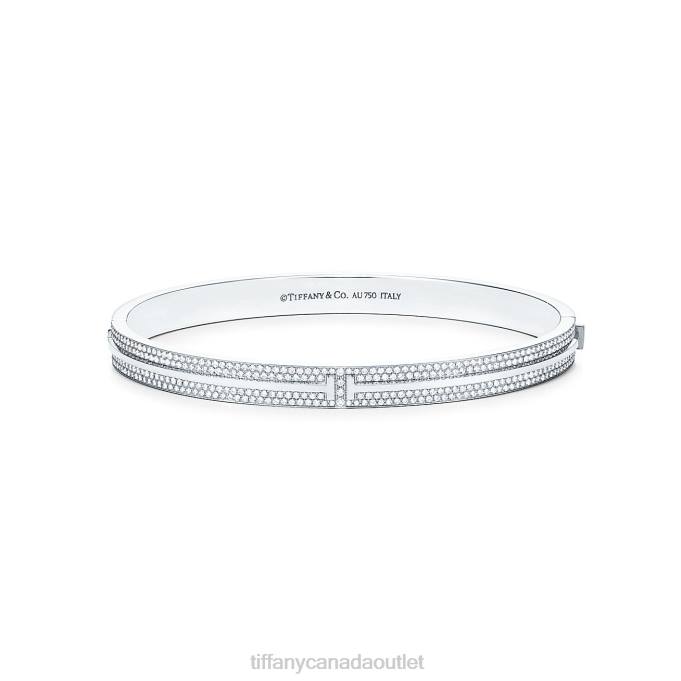 Tiffany T Pave Diamond Hinged Bangle In 18k White Gold, Large.