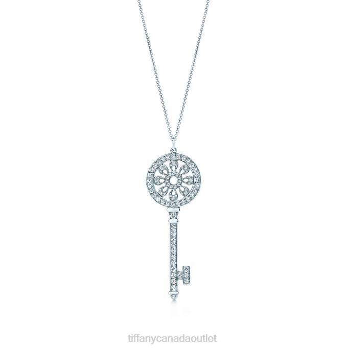 Petals Key Pendant With Round Brilliant Diamonds In Platinum. 2.25” Long. Key And Chain Sold Separately.