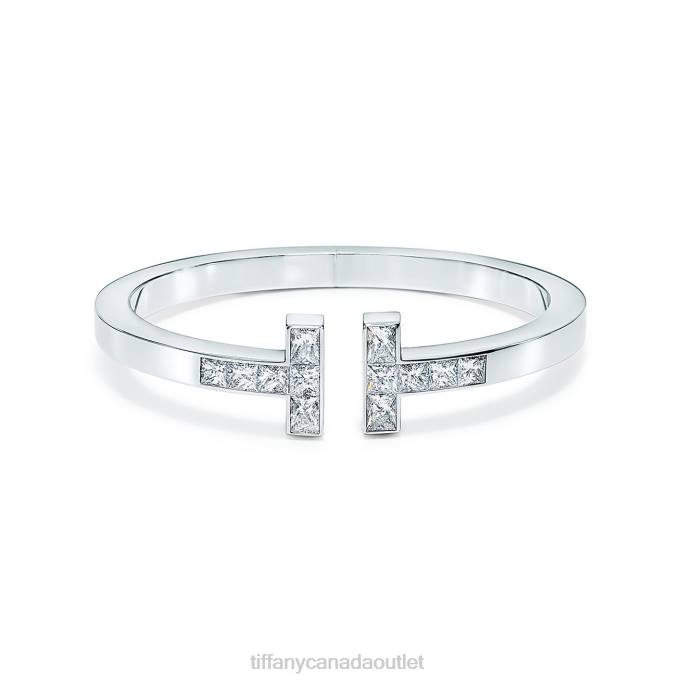 Tiffany T Princess-cut Diamond Square Bracelet In 18k White Gold, Large.