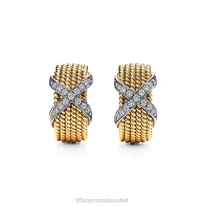 Tiffany & Co. Schlumberger Rope Six-row Ear Clips In 18k Gold With Diamonds.