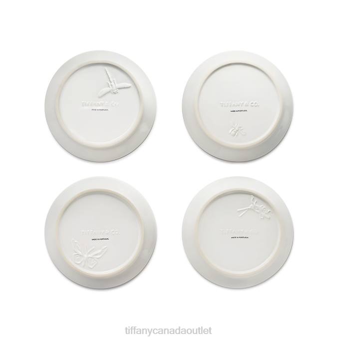 Flora & Fauna Round Dish Set In White Stoneware, Set Of Four.