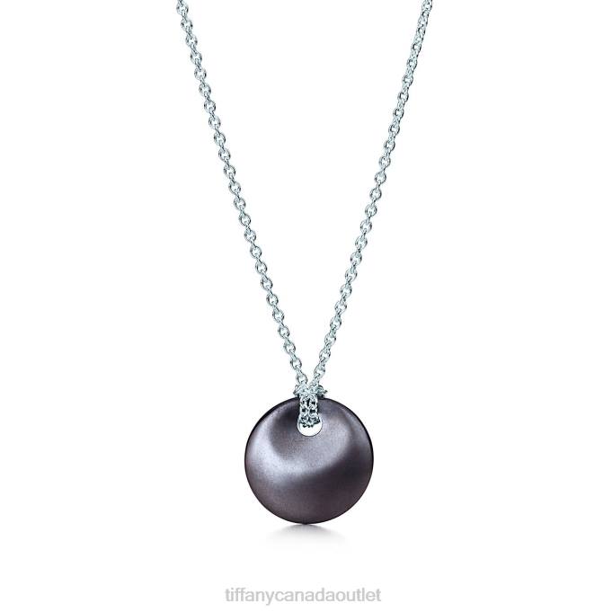 Pendant Of Hematite And Sterling Silver. On A 16” Sterling Silver Chain. 13 Mm. Original Designs Copyrighted By Elsa Peretti.